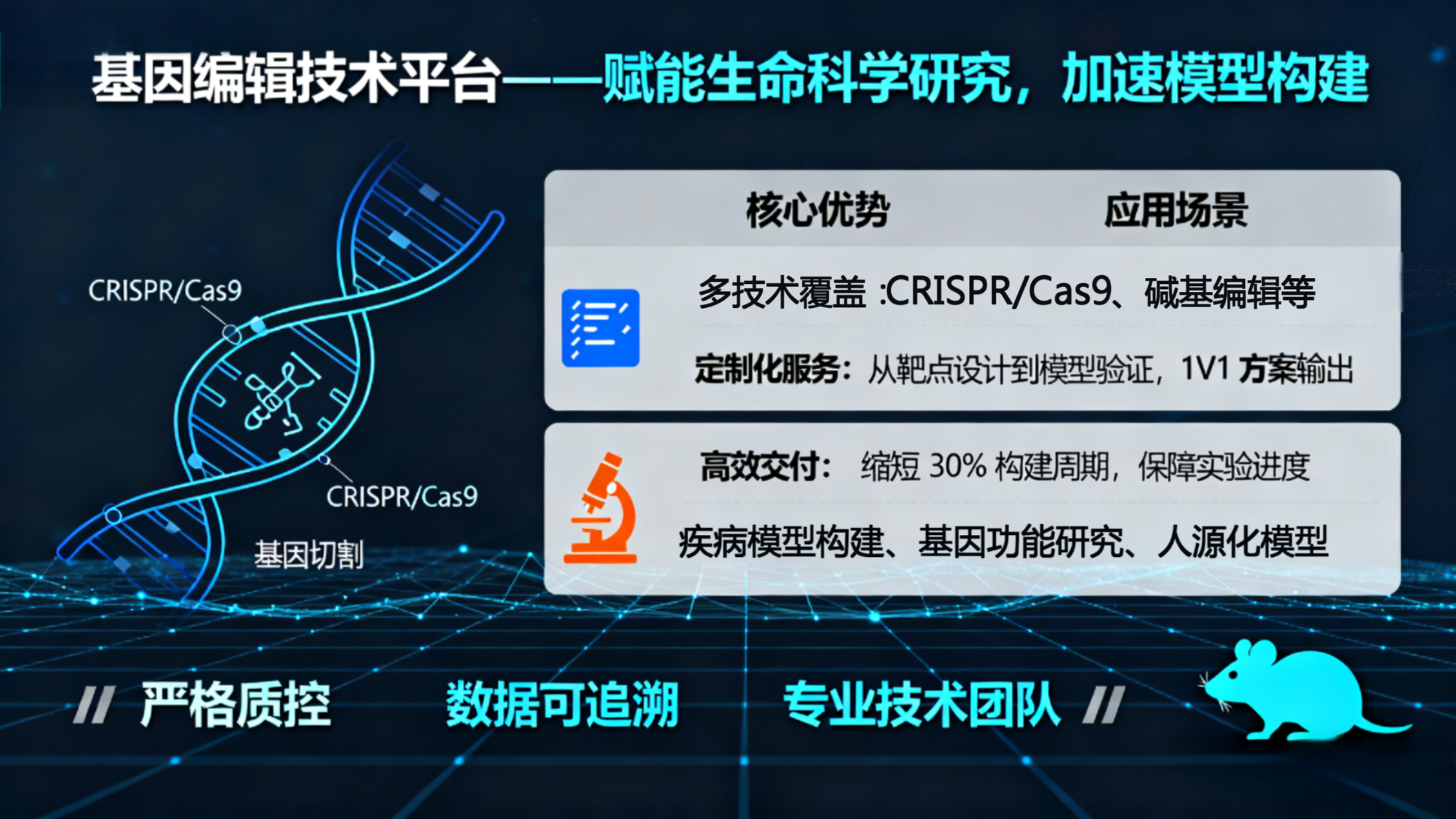 以動(dòng)物模型為核心,為科學(xué)研究、醫(yī)學(xué)轉(zhuǎn)化等領(lǐng)域提供一站式專(zhuān)業(yè)服務(wù)
